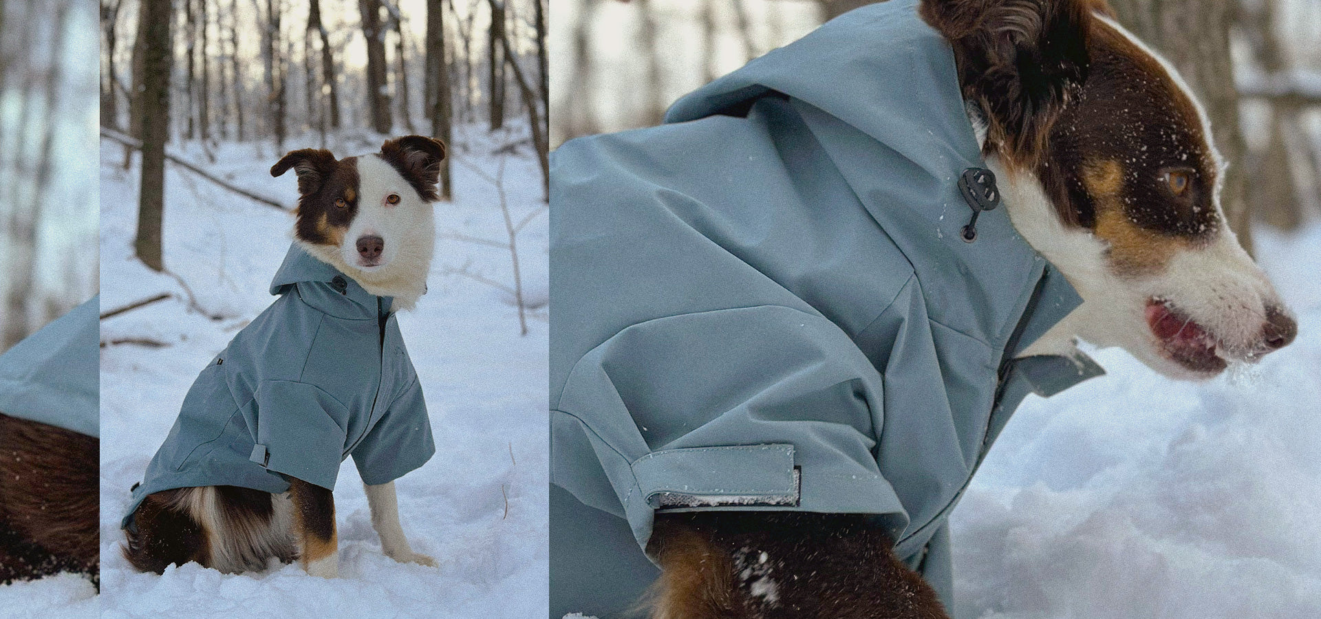 La même technologie de tissu 3 plis utilisée dans les manteaux pour humains. Respirant, imperméable et coupe-vent.