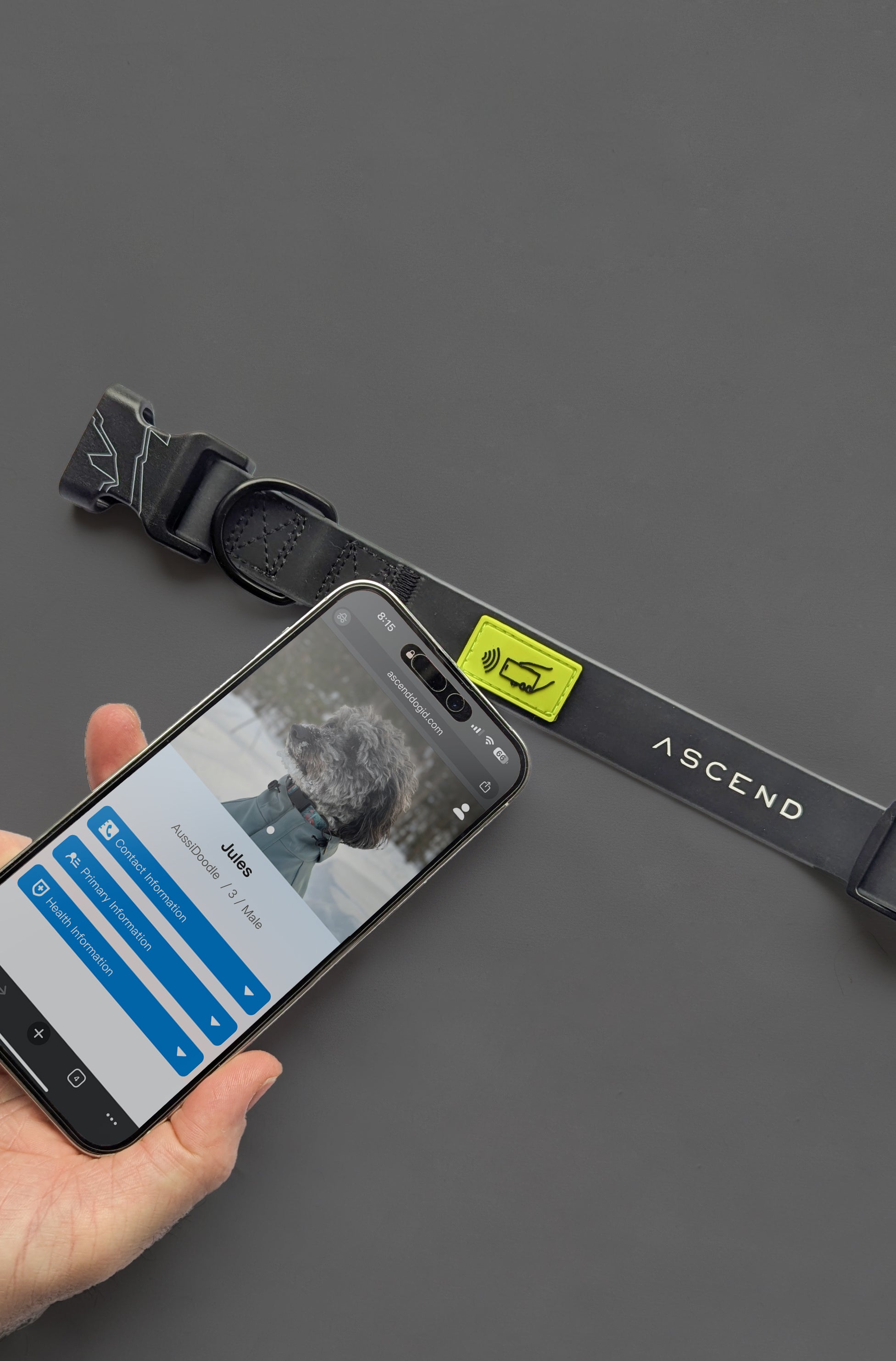 Améliorez la sécurité de votre chien grâce à la technologie NFC. Un simple tap permet d’accéder à son identification, ses informations médicales et ses détails de localisation. Imperméable, durable, sans frais mensuels.